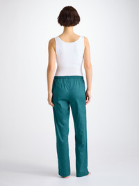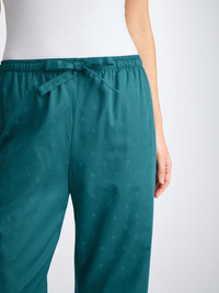 Our jungle green lounge trousers are designed with a relaxed and comfortable shape. Featuring a combined elastic and self-fabric tied waist for a comfortable fit and two inset side pockets to help keep your phone and other items close while lounging, you'll definitely feel as great as you'll look. Designed with a subtle jacquard paisley motif design. Made from our super-soft cotton jacquard, a signature fabric of ours that excels in cooler climes, these stylish lounge trousers are designed to keep you comfortable in your most relaxed moments. The model is 5’9.5” / 177cm tall . She wears a size Small. PRODUCT DETAILS Material: Pure Cotton Fabric Weight: Medium Fabric Type: Regular Gender: Women's Colour: Jungle Green Pattern: Jacquard Season: 25-W Country of Origin: Czech Republic Composition: 100% Cotton Fit: Regular Fit Item Number: 1256-KATE012GRE