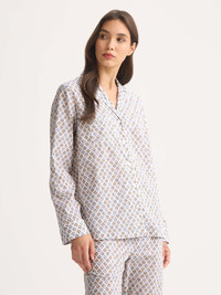Lightweight luxury for easy lounging and restful sleep. Crafted from our signature cotton batiste, these pajamas are soft, breathable and wonderfully light—perfect for thermo-regulation all year round. The white and neutral diamond print designed in our London studio adds a subtle touch of timeless style. The pajama top features a piped trim, patch pocket and imitation mother-of-pearl button-up front. The pants include an elasticated, higher waist with self-fabric drawstring for an adjustable fit, a slightly longer leg length and practical side pockets for everyday comfort. Easy to wear, easy to pack and easy to love, this set is a staple for lounging or sleeping in comfortable style. Add a personal touch with monogramming, a motif or a secret message—learn more about our personalization services. Model is 5’10.5” / 179cm, wearing a size Small. PRODUCT DETAILS Composition: 100% Cotton Fabric Weight: Light Pattern: Print Sleeve Length: Long Sleeve Country of Origin: Czech Republic Item Number: 2012-LEDB091WHI