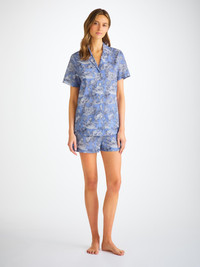 This women's pure cotton shortie pyjama is ideal for the warmer months but will keep you looking and feeling great throughout the seasons. Trust us, you'll want to get into these pyjamas as soon as you get home. Our island hopping print in blue is a hand drawn modern interpretation of a toile de Jouy. Filled with tropical trees and plant life, find tropical birds flying in between the islands. Cut with a flattering but relaxed shape, our women's shortie pyjamas feature a short sleeve jacket top with a mitred corner chest pocket. The shorts have an elasticated and drawstring waist for practicality. The higher waist on the shorts creates a more natural fit and improved comfort, and the most important addition? Pockets! To make it truly special, we can personalise your garment with initials or a motif. Read more about our personalised services here . The model is 5’10” / 178cm tal l . She wears a size Small. PRODUCT DETAILS Composition: 100% Cotton Fabric Weight: Light Pattern: Print Sleeve Length: Short Sleeve Country of Origin: Czech Republic Item Number: 2015-LEDB090BLU