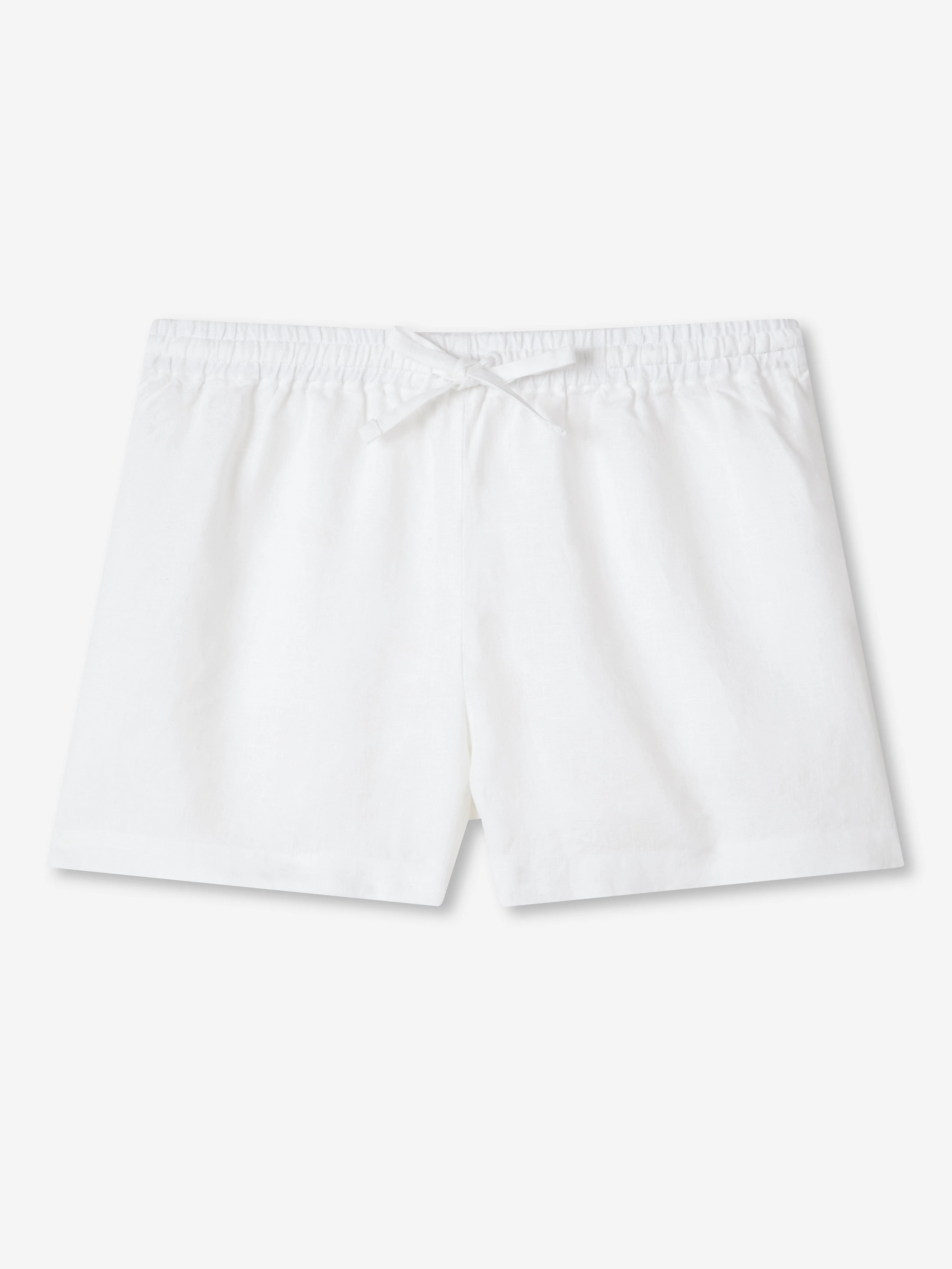 Introducing the new Vienna linen short to our women's resort range, to sit alongside our linen trousers and shirts. Perfect to wear on holiday with our Jordan Tees. The short features an elasticated waistband with self-fabric drawcord for comfort. The back of the short features two patch pockets. We have developed a heavy-weight, beautifully soft and breathable pure linen that will keep you cool and comfortable in even the hottest of conditions. This made in Italy fabric is finished with a super smooth surface. The model is 5’9.5” / 177cm tall with waist size 24” / 61cm, bust size 31” / 79 cm. She wears a size Small. PRODUCT DETAILS Material: Pure Linen Fabric Weight: Medium Fabric Type: Regular Gender: Women's Colour: White Pattern: Plain Season: 24-W Country of Origin: Portugal Composition: 100% Linen Fit: Regular Fit Item Number: 1703-VIEN001WHI