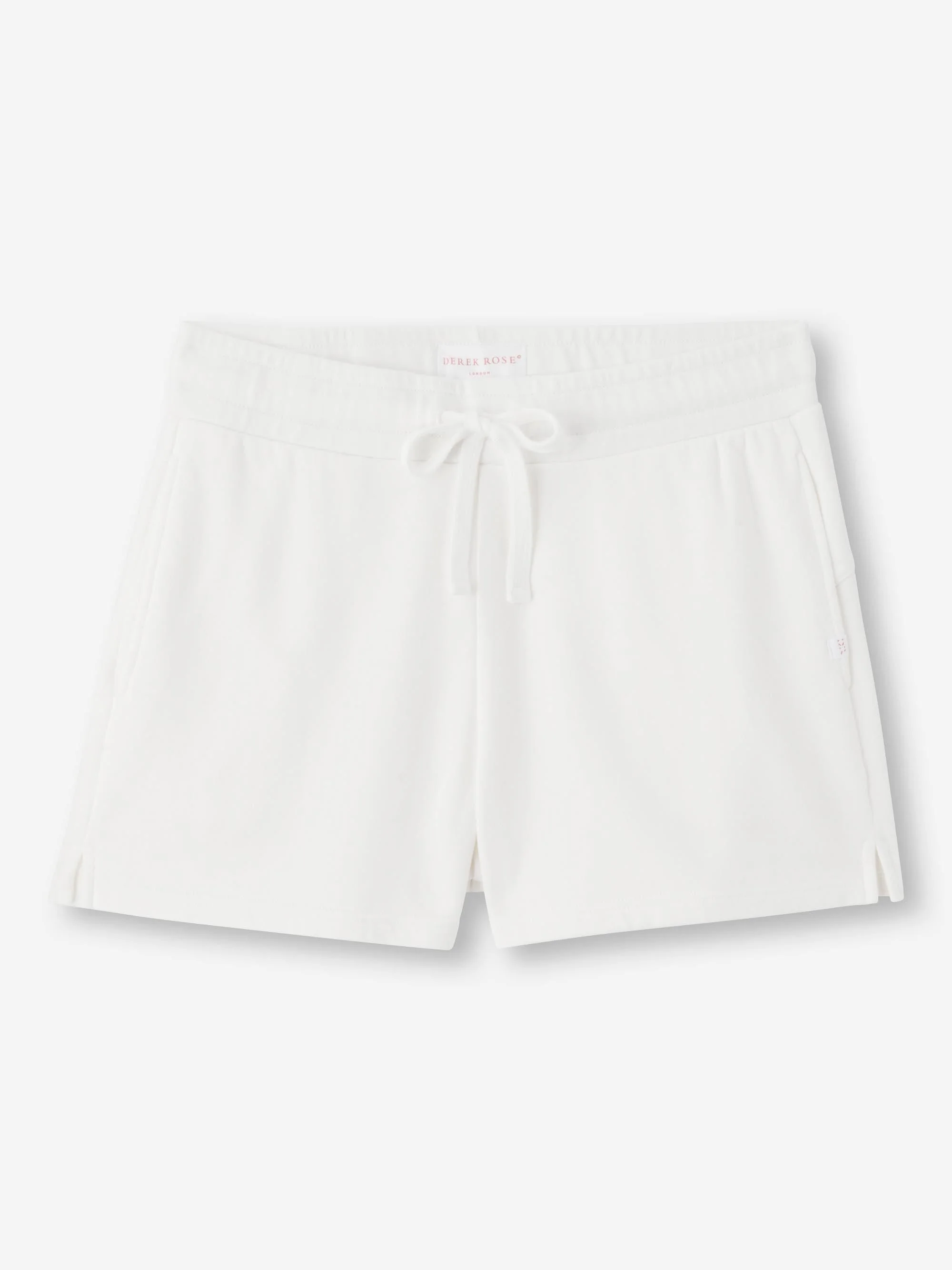Seen here in white, our Quinn sweat shorts ensure all-day-long comfort. Featuring a combined elastic and tie waistband, our sweats also feature two front side pockets and a zipped back pocket to keep your phone and essentials close whilst you're out and about. Stylish, yet practical. The Quinn fabric combines all the key qualities of our cotton and micro modal; it's durable and has great colour retention, meaning it can withstand long-lasting wear and won't fade in colour. It's thermoregulating, making it perfect for warm days or cosy evenings in and it's breathable, so it's excellent for exercise. But perhaps most importantly, it's forever soft, seriously - you won't believe the quality. The model is 5’9.5” / 177cm tall . She wears a size Small. PRODUCT DETAILS Material: Cotton/Micro Modal Fabric Weight: Medium Fabric Type: Jersey Gender: Women's Colour: White Pattern: Plain Season: 25-W Country of Origin: Portugal Composition: 68% Cotton 32% Modal Fit: Regular Fit Item Number: 1704-QUIN001WHI