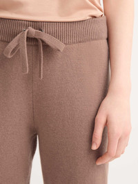 Luxurious ease meets refined design The Daphne Cashmere Sweatpants bring together ultimate comfort and understated sophistication. Crafted from 100% Italian Cariaggi cashmere — renowned for its unrivalled softness, warmth and lightness — these sweatpants redefine off-duty luxury. Designed for a flattering yet relaxed silhouette, they feature an elasticated waistband with self-fabric drawstring ties, ribbed ankle cuffs and a gently draped leg for effortless movement. Lightweight and easy to pack, they’re perfect for travel, lounging at home or layering apres-ski. Part of our premium line of luxury leisurewear, the Daphne sweatpants embody our commitment to exceptional craftsmanship and enduring quality. Certified by the Health and Textile Association, Cariaggi cashmere is sustainably produced, hypoallergenic and gentle on the skin — the ultimate expression of comfort and care. Pair with the matching Daphne Hoodie for a coordinated look that’s as chic as it is cosy. Keep your cashmere looking its best with our Beechwood Cashmere Comb . Model is 5’10.5” / 179cm, wearing a size Small. PRODUCT DETAILS Composition: 100% Cashmere Fabric Weight: Medium Pattern: Plain Country of Origin: Mauritius Item Number: 1701-DAPH016BRO
