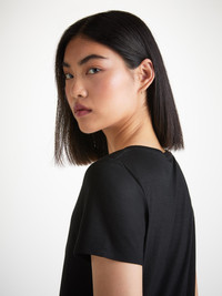 Our women's black leisure t-shirt is an effortlessly chic sport-luxe essential. The Lara fabric is slightly lighter than Basel, but has enough coverage to be worn out of the house and also offers good breathability, making it perfect for warmer climates. Not only is the Lara versatile, it has maintained the super-soft fabric quality and stretch composition that we know you love. What's more, the Lara fabric retains its initial softness and colour and is also responsibly and ethically sourced; spun and knitted in Europe. To make it truly special, we can personalise your garment with initials or a motif. Read more about our personalised services here . The model is 5’11” / 180cm tall with waist size 24.5” / 62cm, bust size 32” / 82cm. She wears a size Small. PRODUCT DETAILS Material: Micro Modal Stretch Fabric Weight: Medium Fabric Type: Jersey Gender: Women's Colour: Black Pattern: Plain Sleeve Length: Short Sleeve Season: 24-W Neck Shape: Crew Neck Country of Origin: Czech Republic Composition: 95% Modal 5% Elastane Fit: Regular Fit Item Number: 1227-LARA001BLA