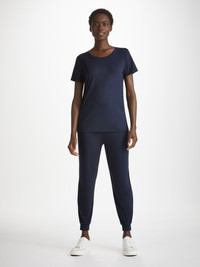 Perfected over numerous years, our women's navy leisure t-shirt is an effortlessly chic sport-luxe essential. The Lara fabric is a weight between Basel and Carla, meaning it has enough coverage to be worn out the house and also offers good breathability, making it perfect for warmer climates. Not only is the Lara versatile, it has maintained the super-soft fabric quality and stretch composition that we know you love. What's more, the Lara fabric retains its initial softness and colour and is also responsibly and ethically sourced; spun and knitted in Europe. To make it truly special, we can personalise your garment with initials or a motif. Read more about our personalised services here . The model is 5’9” / 175cm tall with waist size 23.5” / 60cm, bust size 32” / 82cm. She wears a size Small. PRODUCT DETAILS Material: Micro Modal Stretch Fabric Weight: Medium Fabric Type: Jersey Gender: Women's Colour: Navy Pattern: Plain Sleeve Length: Short Sleeve Season: 24-W Neck Shape: Crew Neck Country of Origin: Czech Republic Composition: 95% Modal 5% Elastane Fit: Regular Fit Item Number: 1227-LARA001NAV