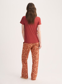 Everyday ease. A softer take on timeless style. Soft, breathable and effortlessly comfortable, the women's Lara t-shirt in rose red is a wardrobe favourite that transitions seamlessly from daywear to nighttime. With its classic crew neckline and gently flattering modern silhouette, it’s a versatile piece that works beautifully on its own, layered under a blazer, or with matching pajamas. Crafted from lightweight micro modal stretch, Lara offers a smooth, temperature-regulating feel that keeps you comfortable all year and all day round. The fabric is not only luxuriously soft but also resilient, holding its shape and color through countless washes. For a personal touch, choose to monogram your garment with initials or add a motif through our personalization service. Model is 5’10.5” / 179cm and wears a size Small. PRODUCT DETAILS Composition: 95% Modal 5% Elastane Fabric Weight: Medium Pattern: Plain Sleeve Length: Short Sleeve Neck Shape: Crew Neck Country of Origin: Czech Republic Item Number: 1227-LARA010RED