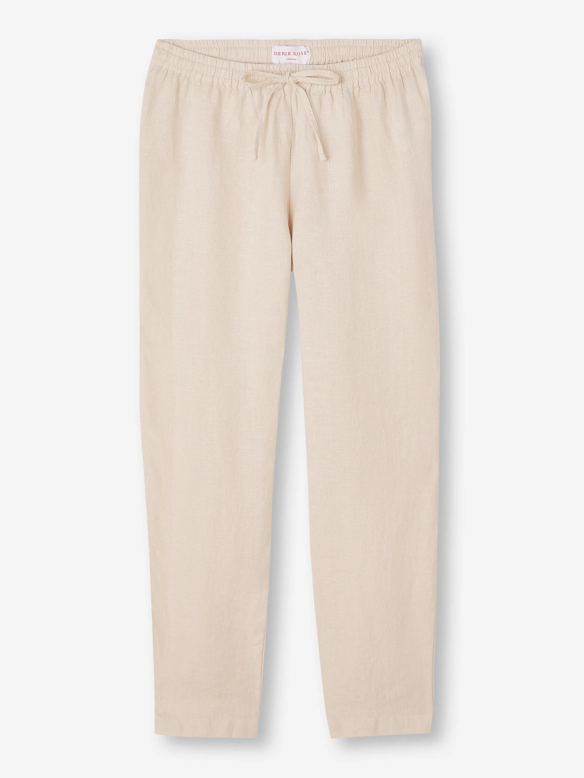 We have developed a beautiful, heavier weight washed linen in a sand tone that becomes increasingly soft with wear. The breathable pure linen will keep you cool and comfortable in even the hottest of conditions. Whether you style with sandals or sneakers, whether that's rolled up or down, they’re the perfect choice for a daytime BBQ or smart casual evenings outside with friends. Cut for a regular fit for the perfect, warm weather ready style. The trouser features two side pockets whilst the front features an elasticated waistband with drawcord for comfort and our minimalist rose logo label on the front left pocket finish the look. The model is 5’9.5” / 177cm tall with waist size 24” / 61cm, bust size 31” / 79 cm. She wears a size Small. PRODUCT DETAILS Material: Pure Linen Fabric Weight: Medium Fabric Type: Regular Gender: Women's Colour: Sand Pattern: Plain Season: 24-W Country of Origin: Portugal Composition: 100% Linen Fit: Regular Fit Item Number: 1705-VIEN001SAN