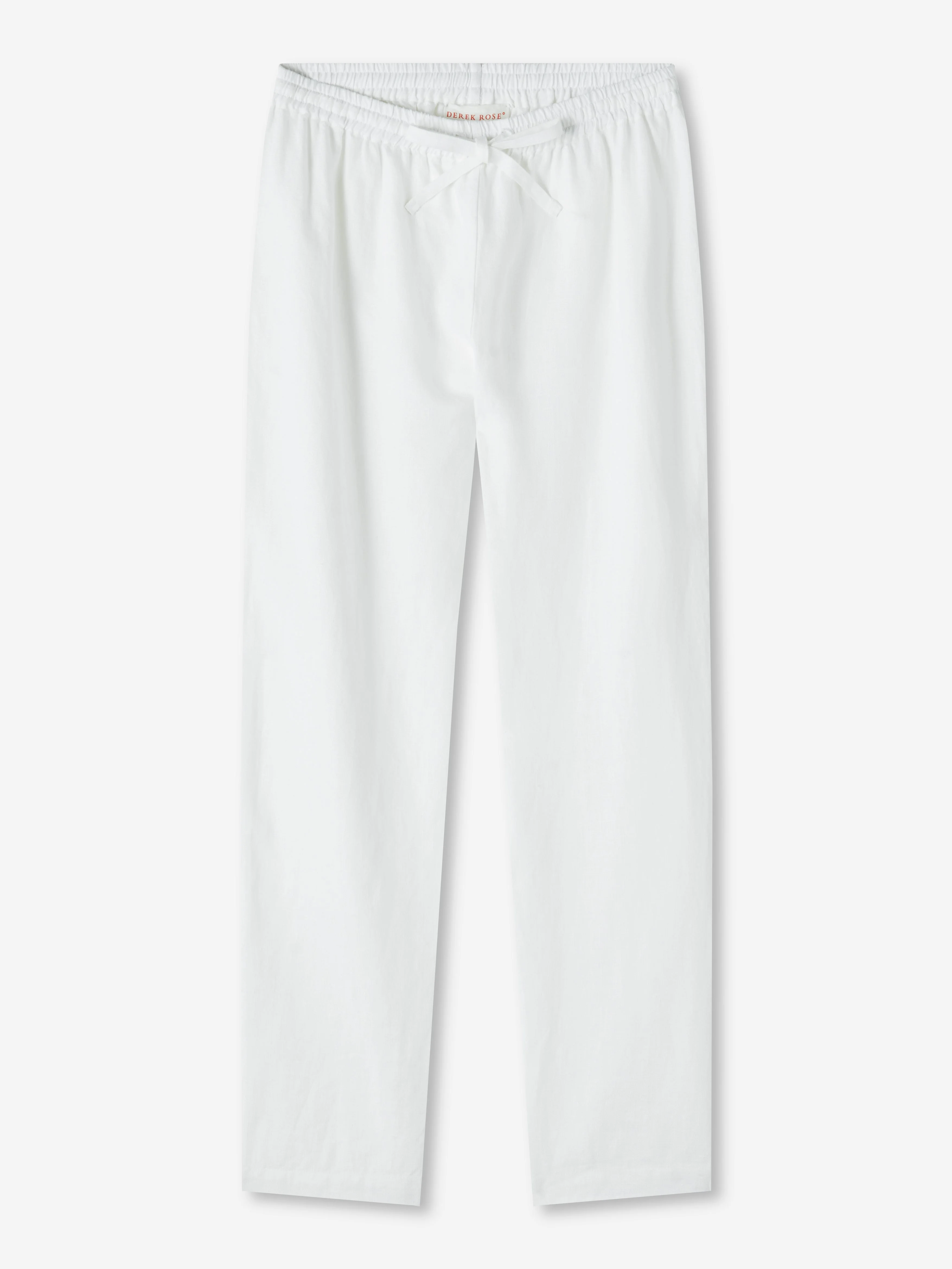 We have developed a beautiful, heavier weight washed linen that becomes increasingly soft with wear. The breathable pure linen will keep you cool and comfortable in even the hottest of conditions. Whether you style with sandals or sneakers, whether that's rolled up or down, they’re the perfect choice for a daytime BBQ or smart casual evenings outside with friends. Cut for a regular fit for the perfect, warm weather ready style. The back of the trouser features two back patch pockets whilst the front features an elasticated waistband with drawcord for comfort and our minimalist rose logo label on the front left pocket finish the look. The model is 5’11” / 180cm tall with waist size 24.5” / 62cm, bust size 32” / 82cm. She wears a size Small. PRODUCT DETAILS Material: Pure Linen Fabric Weight: Medium Fabric Type: Regular Gender: Women's Colour: White Pattern: Plain Season: 24-W Country of Origin: Portugal Composition: 100% Linen Fit: Regular Fit Item Number: 1705-VIEN001WHI