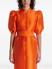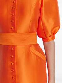 Amoako satin midi dress Highlights - Carrot orange - Satin finish - Mock neck - Front button fastening - Short puff sleeves - Belted waist - Two diagonal pockets to the sides - Straight leg - Ankle-length - Straight hem Imported Composition Lining: Viscose 100% Outer: Polyester 85%, Silk 15% Washing instructions Dry Clean Only