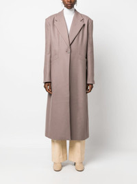 Barbara stripe-detail single-breasted coat Highlights - Taupe - Virgin wool blend - Stripe detailing - Wide notch lapels - Front button fastening - Long sleeves - Buttoned cuffs - Two side welt pockets - Central rear vent - Long length Imported Composition Outer: Virgin Wool 72%, Polyamide 28% Lining: Viscose 100% SIZE & FIT Model measurements Height 5 ft 10 in(1.78 m) Bust/Chest 31.49 in(80 cm) Hips 37 in(94 cm) Waist 23.62 in(60 cm) FittingInformation Designed to be unstructured, offering a loose fit throughout The internal shoulder pads offer a structured shape Made from a midweight non-stretch fabric This piece fits true to size – take your usual size