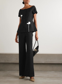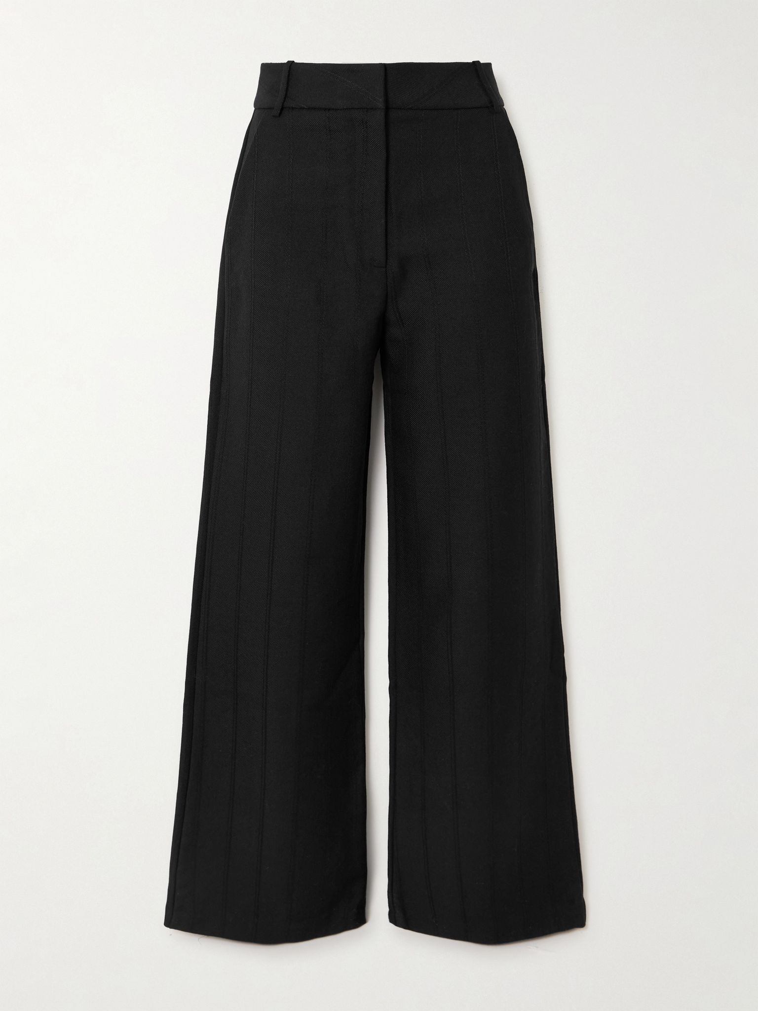 DESTREE's collections capture the elegance of Parisian style. These 'Beatrice' pants are tailored in a wide shape from wool woven with subtle stripes. Wear yours with a bateau-neck top and pumps. Size & Fit - Fits true to size, take your normal size - High-rise, cut for a wide-leg fit - Mid-weight, non-stretchy fabric - Model is 180cm/ 5'11" and is wearing a FR 36 Model measurements: - Bust: 80cm/ 31.5" - Waist: 65cm/ 25.5" - Hip: 89cm/ 35" Details & Care - Black wool - Concealed button, hook and zip fastening at front - 100% virgin wool - Unlined - Dry clean