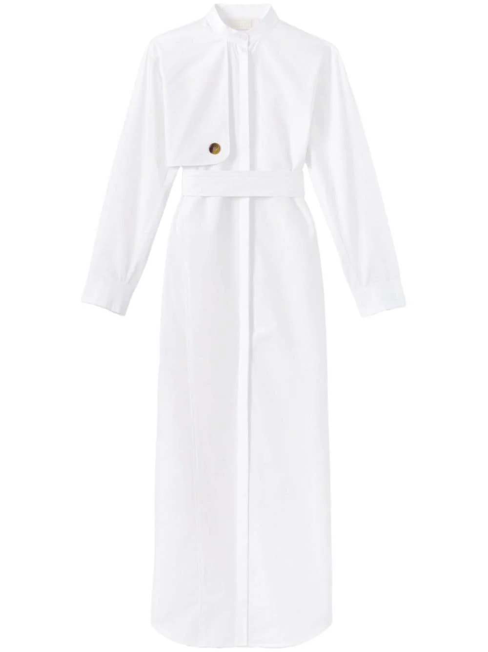 Hans cotton dress Highlights - Optical white - Cotton - Collarless - Concealed front fastening - Fitted waistline - Long sleeves - Straight hem - Mid-length Imported Composition Cotton 100%