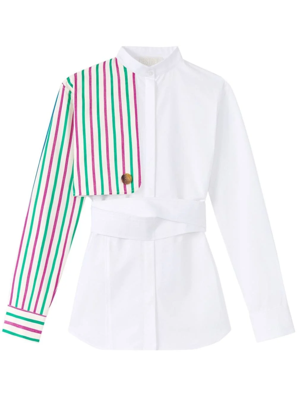 Hans striped cotton shirt Highlights - White/pink/green - Cotton - Vertical stripe pattern - Layered design - Band collar - Front button fastening - Long sleeves - Buttoned cuffs - Fitted waistline - Curved hem Imported Composition Cotton 100% Washing instructions Hand Wash