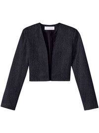 Helmut denim cropped jacket Highlights - Indigo blue - Stretch-cotton - Denim - Collarless - Open front - Long sleeves - Straight hem - Cropped Imported Composition Cotton 98%, Elastane 2%