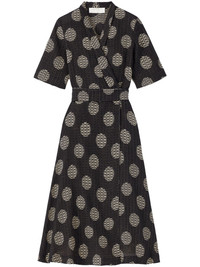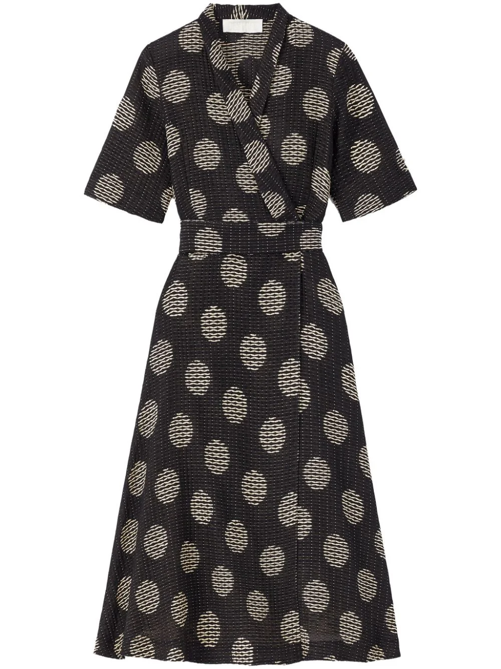 Lee polka-dot midi dress Highlights - Black/white - Textured finish - Fine ribbed - Polka dot embroidery - Wrap design - V-neck - Concealed side fastening - Short sleeves - A-line skirt - Mid-length - Straight hem Imported Composition Viscose 100%, Cotton 100%, Acrylic 100%