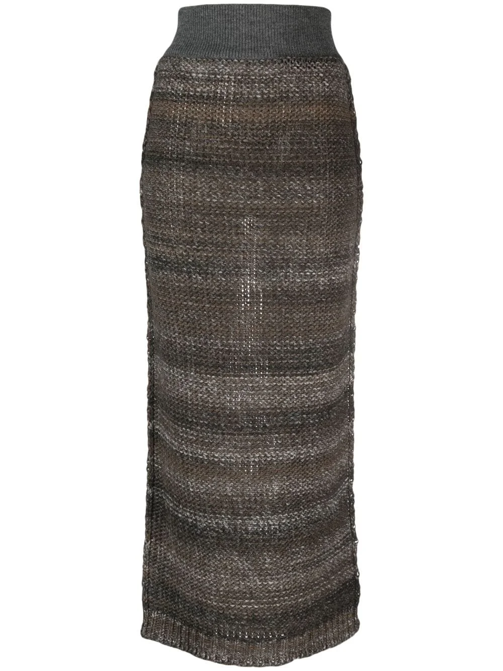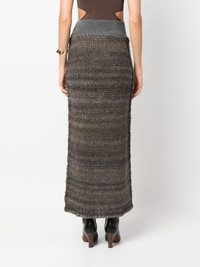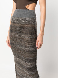 Lynette knitted midi skirt Highlights - Ash grey/chestnut brown - Wool blend - Knitted construction - Chunky knit - Melange effect - Ribbed waistband - Elasticated waistband - Mid-length Imported Composition Acrylic 70%, Wool 30% SIZE & FIT Model measurements Height 5 ft 9 in(1.76 m) Bust/Chest 33.07 in(84 cm) Hips 34.64 in(88 cm) Waist 25.59 in(65 cm) FittingInformation This maxi-length skirt is intended to be worn high on the waist Made with a midweight knit, this piece offers some stretch This piece fits true to size – take your usual size