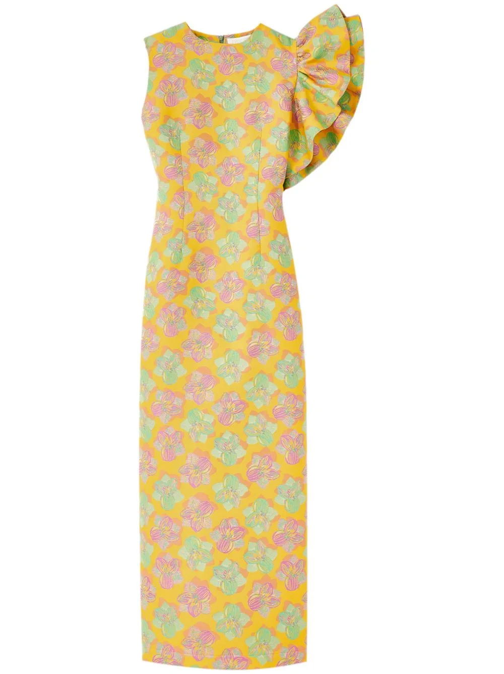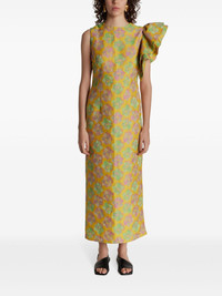 one-shoulder floral midi-dress Highlights - Yellow/pink/green - Cotton blend - All-over floral print - Round neck - One-shoulder - Single puff sleeve - Rear zip fastening Imported Composition Polyester 51%, Viscose 26%, Cotton 23% Washing instructions Hand Wash