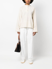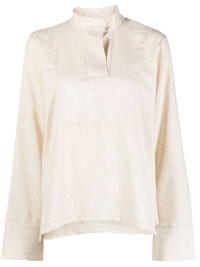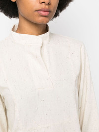 Paavo button-placket shirt Highlights - Ivory white - Wool blend/silk - Band collar - Front button placket - Long sleeves - Straight hem Imported Composition Wool 46%, Viscose 24%, Polyamide 16%, Polyester 11%, Silk 2%, Elastane 1% SIZE & FIT Model measurements Height 5 ft 10 in(1.78 m) Bust/Chest 32.67 in(83 cm) Hips 35.43 in(90 cm) Waist 23.22 in(59 cm) FittingInformation Designed to be unstructured, offering a loose fit throughout Made from a midweight stretch fabric, this piece offers elasticity and flexibility when worn This piece fits true to size – take your usual size
