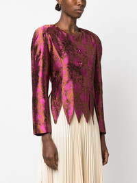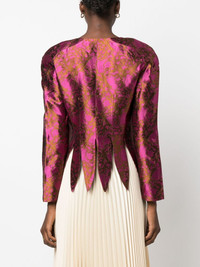 Wade floral-jacquard satin jacket Highlights - Fuchsia pink/golden brown - Satin finish - Patterned jacquard - Floral motif - Round neck - Front button fastening - Shoulder pads - Long sleeves - Scallop hem Imported Composition Outer: Acetate 50%, Viscose 50% Lining: Viscose 100% SIZE & FIT Model measurements Height 5 ft 10 in(1.78 m) Bust/Chest 31.49 in(80 cm) Hips 37 in(94 cm) Waist 23.62 in(60 cm) FittingInformation Designed for a slim fit that sits just away from the body offering a close yet comfortable fit The internal shoulder pads offer a structured shape Made from a midweight non-stretch fabric This piece fits true to size – take your usual size