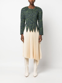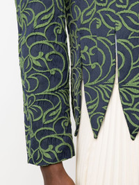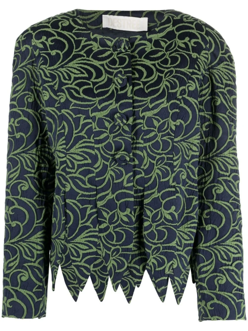 Wade floral-jacquard satin jacket Highlights - Navy blue/olive green - Satin finish - Patterned jacquard - Round neck - Shoulder pads - Long sleeves - Front button fastening - Scallop hem Imported Composition Outer: Polyester 68%, Cotton 26%, Acrylic 6% Lining: Viscose 100% SIZE & FIT Model measurements Height 5 ft 10 in(1.78 m) Bust/Chest 31.49 in(80 cm) Hips 37 in(94 cm) Waist 23.62 in(60 cm) FittingInformation Designed for a slim fit that sits just away from the body offering a close yet comfortable fit The internal shoulder pads offer a structured shape Made from a midweight non-stretch fabric This piece fits true to size – take your usual size