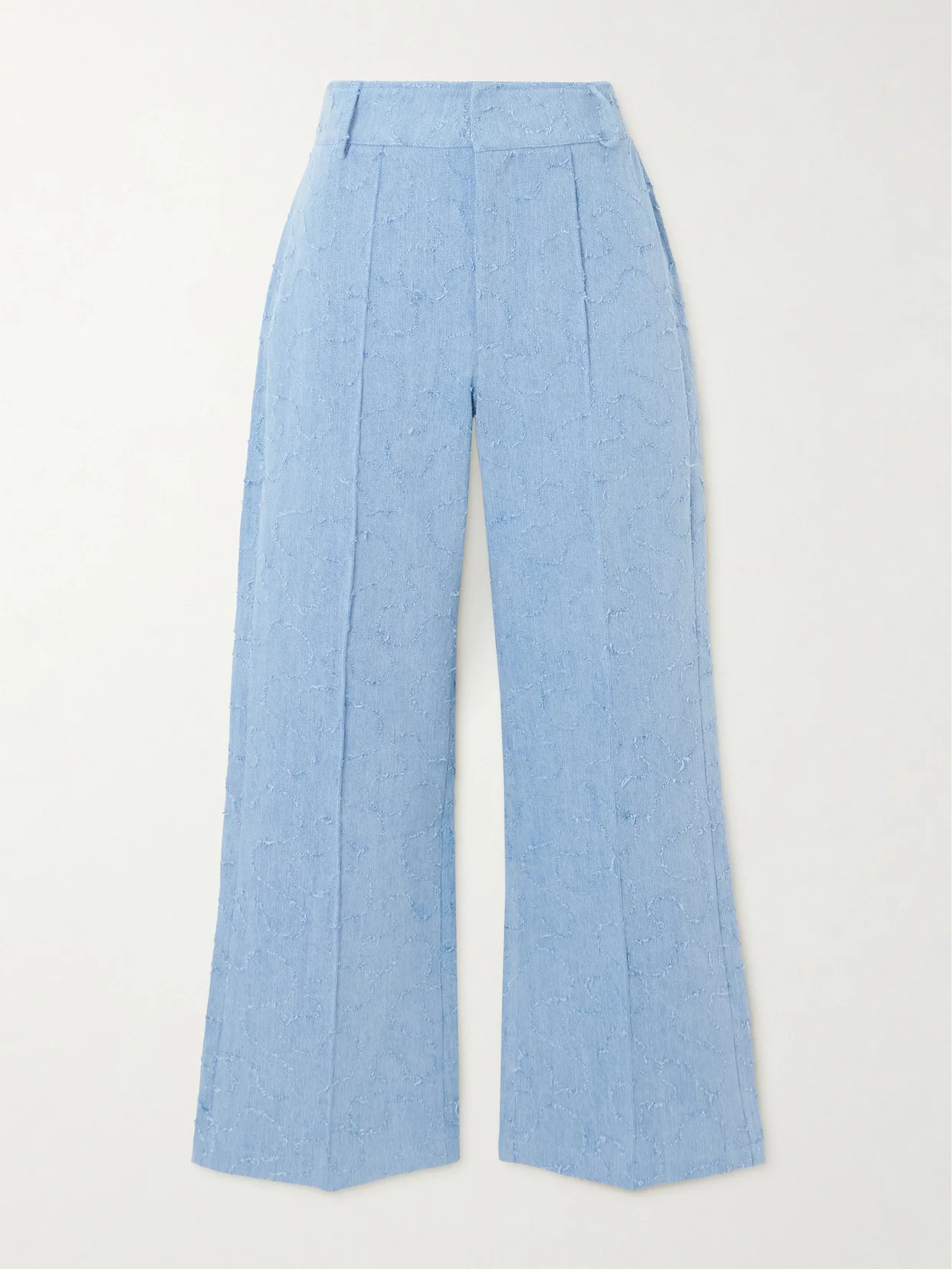 DESTREE's collections are inspired by the world of contemporary art, so it makes sense that these jeans are named after Yoshitomo Nara. Cut from light-blue denim that's artfully frayed in a swirling pattern, they have a high waist and wide legs with sharp creases. Thread a slim belt through the loops.