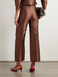 DESTREE's 'Yoshi' pants are made from lustrous taffeta in a dark-brown 'Capuccino' shade to match the coordinating 'Amoako' jacket in our edit. They sit high on the waist and have exposed seams along the straight legs, which flare out gently at the cropped cuffs. Size & Fit - Fits true to size, however those who are between sizes should take the larger size - High-rise, intended for a straight-leg fit with a flared hem - Cropped length - Mid-weight, non-stretchy fabric - Model is 180cm/ 5'11" and is wearing a FR 36 Model measurements: - Bust: 86cm/ 34" - Waist: 65cm/ 25.5" - Hip: 90cm/ 35.5" Details & Care - Dark-brown taffeta - Concealed hook and button fastenings at front - 82% polyester, 18% silk - Dry clean