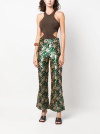 Yoshitomo jacquard straight-leg trousers Highlights - Forest green/beige - Straight leg - Full jacquard - Satin finish - Mid-rise - Belt loops - Concealed front fastening Imported Composition Acetate 100% SIZE & FIT Model measurements Height 5 ft 9 in(1.76 m) Bust/Chest 33.07 in(84 cm) Hips 34.64 in(88 cm) Waist 25.59 in(65 cm) Washing instructions Dry Clean Only