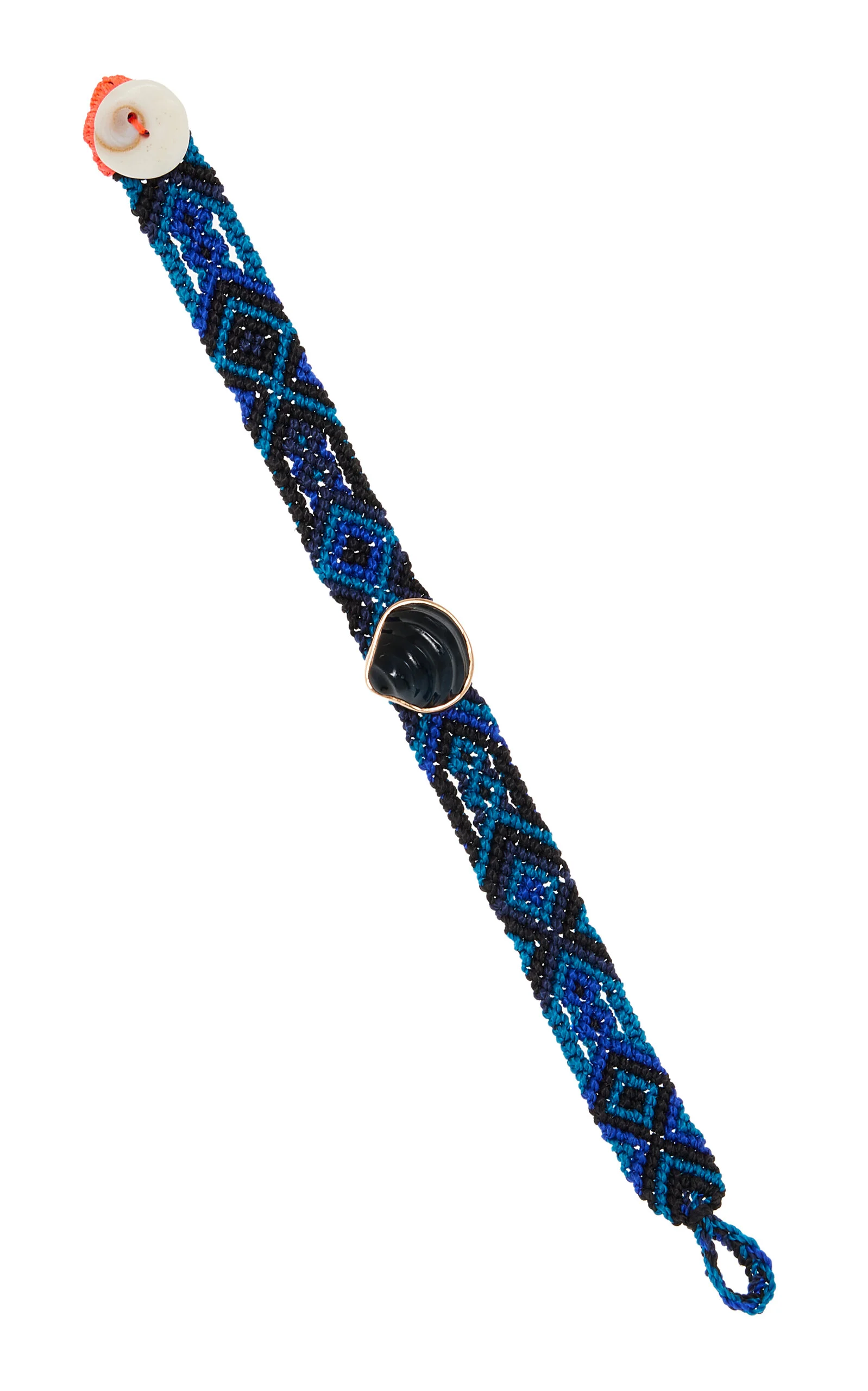 Founded in 2006 by Sara Beltran, Dezso is inspired by the El Paso native's travels and love and respect for the ocean. PRODUCT DETAILS - Clasp fastening - Composition: 18K Rose Gold, Nylon, Blue Tiger Eye - Imported - Please note the possibility of natural inclusions in gemstones SIZE & FIT - Stone 13x13 mm, 6.5 in / 16.5 cm Length
