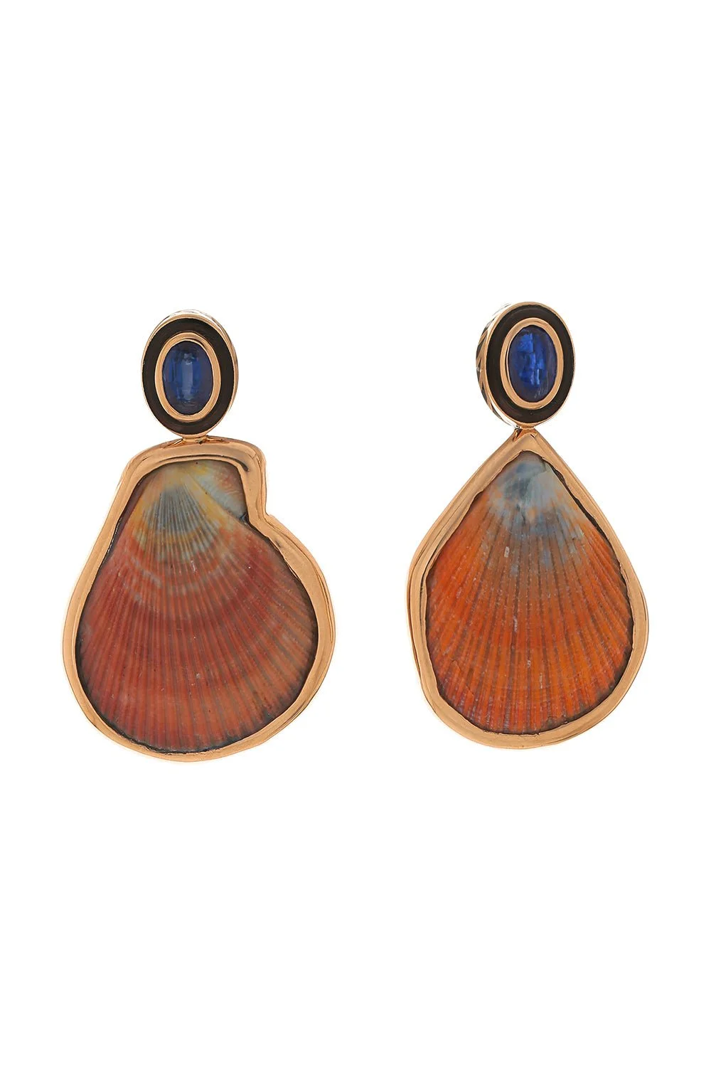 DETAILS AND INSIGHT Dezso by Sara Beltran grande kyanite clam earrings in rose gold. 18K Rose Gold Clam Shells, Kyanite Style G.CLAMKYANITEEARRINGS
