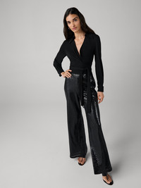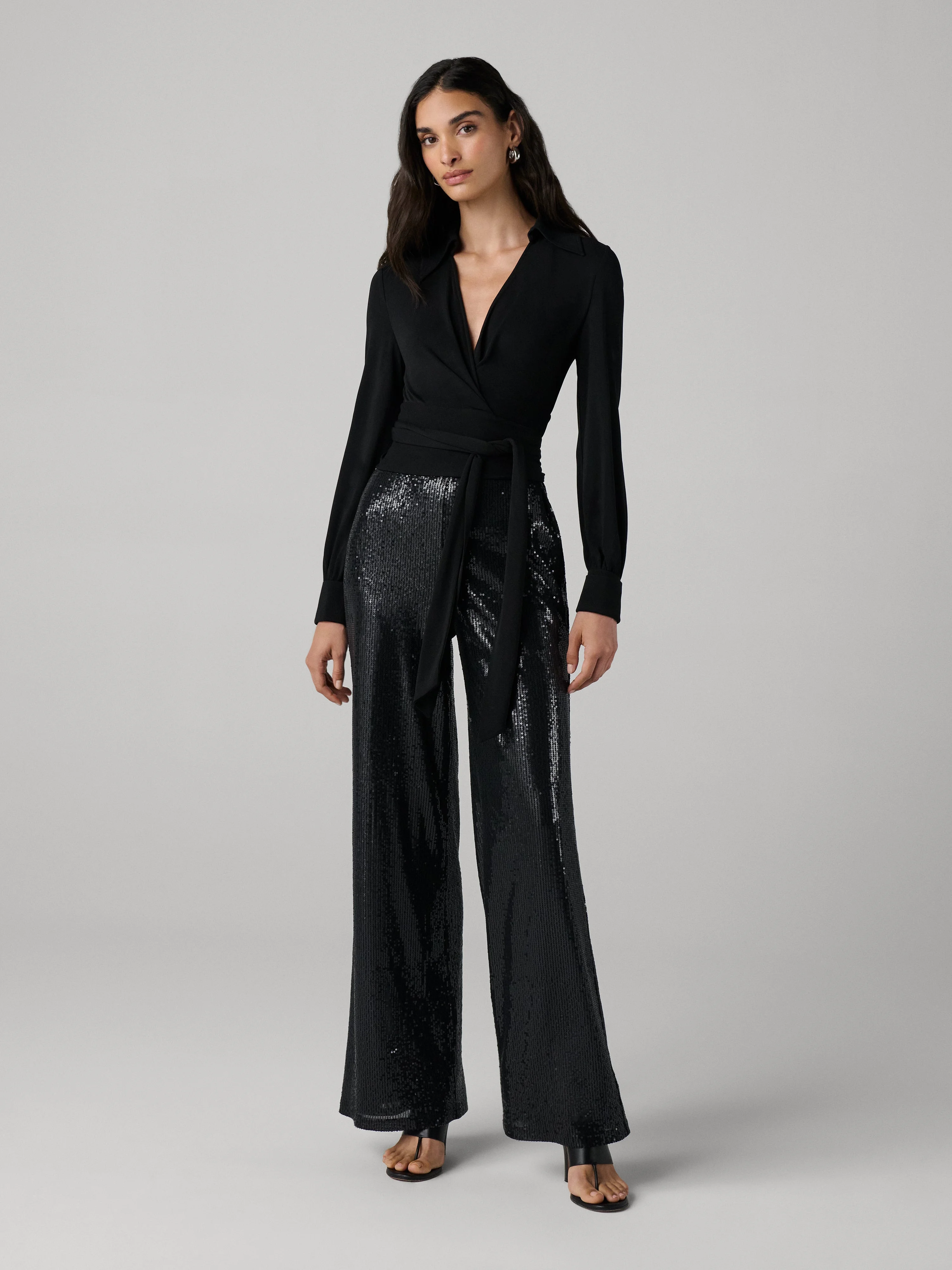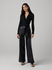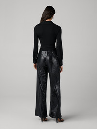 Wrapped in radiant sequins, the Adelina Pant ensures the spotlight is always on you. - Mid rise - Straight leg - Slight stretch - Fully sequined Size & Fit Beatriz is 5'11" and is wearing a size XS Fabric & Care A richly textured sequin fabric brought to life with a vibrant floral print. 95% Polyester 5% Spandex Dry Clean Only