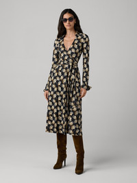 Our Antonia Wrap Dress, crafted from our signature 100% silk jersey, elevates the classic wrap silhouette with playful cuffed sleeves. - 100% Silk - Classic collar - V neckline - Long sleeves - Cuffs at wrist - True wrap - Midi length Size & Fit Beatriz is 5'11" and is wearing a size XS Fabric & Care Silk jersey is our signature. Discovered by Diane in the 70s, this fabric has an effortless feel with a hint of stretch and a polished, elegant look. 100% Silk Jersey Dry Clean Only