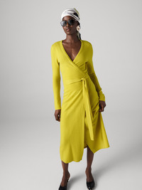 Crafted from a soft cashmere wool blend, the Astrid Wrap Dress has a cozy feel. A bestseller year after year, this piece has a simple, polished look that can be dressed up or down. - 30% Cashmere 70% Merino Wool - V-neckline - Long sleeves - True wrap closure - Midi length Size & Fit Isha is 5'10" and is wearing a size XS Fabric & Care Ultra soft and warm. 70% Merino Wool, 30% Cashmere
