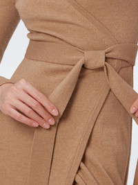 Crafted from a soft cashmere wool blend, the Astrid midi dress has a cozy feel. A bestseller year after year, this piece has a simple, polished look that can be dressed up or down. - 30% Cashmere - 70% Merino Wool - V-neckline - Long sleeves - Wrap Closure - Midi Size & Fit Sumaya is 5 Feet 8 Inches and wearing a size XS. Fabric & Care 30% Cashmere, 70% Merino Wool