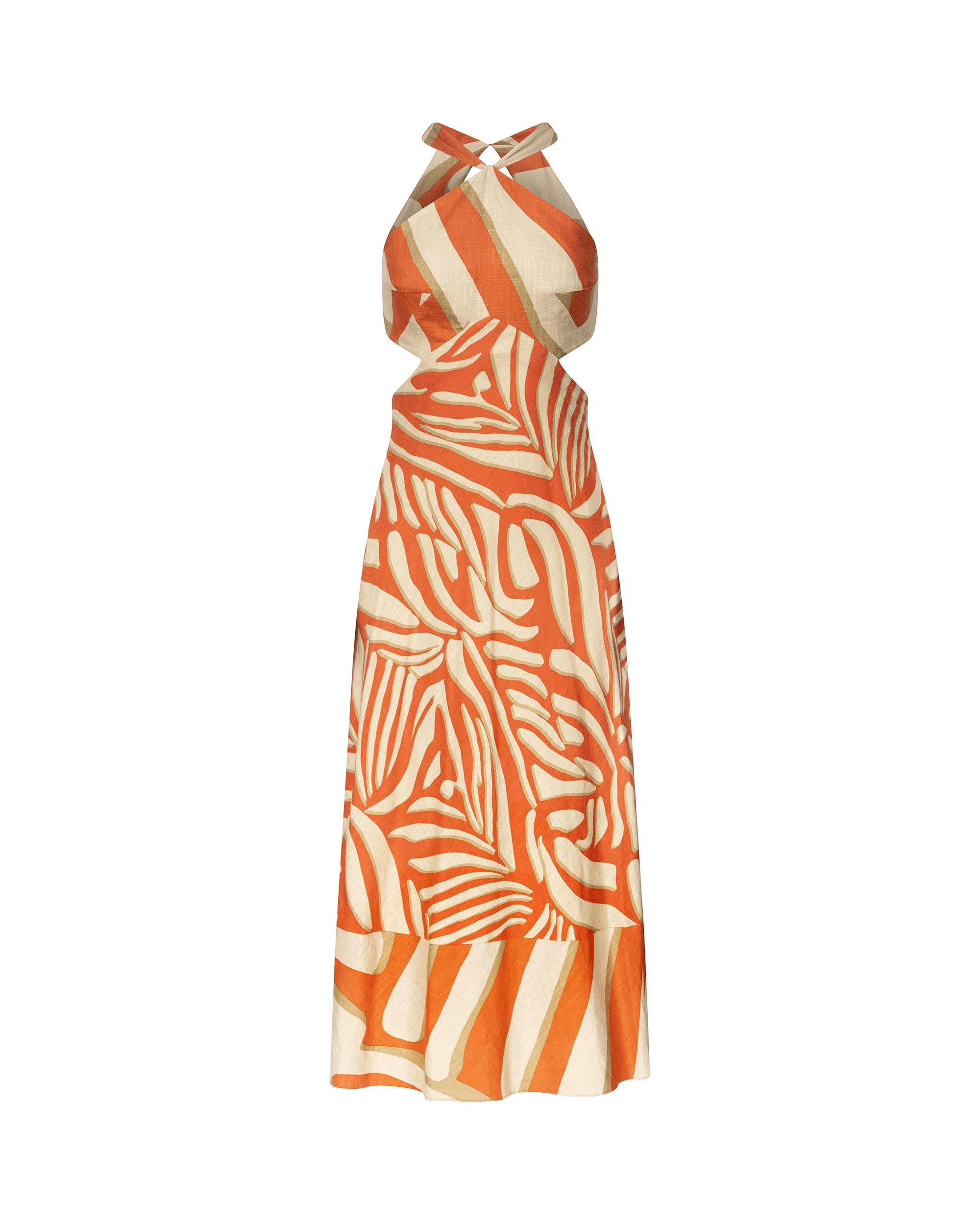 Elevate your warm-weather wardrobe with the Ava Dress, a striking printed cotton essential. - Halter neckline - Sleeveless - Open back with tie - Midi length Size & Fit Afra is 5'9" and is wearing a size 2 Fabric & Care A soft, light natural fabric that creates structured silhouettes with a hint of stretch for extra comfort. 98% Cotton 2% Spandex