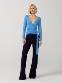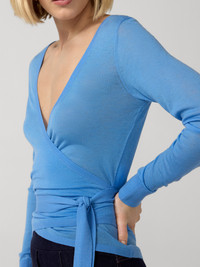 The Ballerina Wrap Top is a soft, lightweight sweater with a feminine silhouette inspired by classic ballerina style. - 100% Merino Wool - V neckline - Long sleeves - Wrap tie closure - Waist length Size & Fit Jade is 5'9" and is wearing a size XS Fabric & Care Supremely soft, this wool combines durability and breathability to maximize comfort. 100% Merino Wool Dry Clean Only