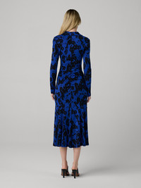 Our Bruna Dress is crafted from soft, lightweight fabric and designed with a timeless silhouette. - Collared neckline - Buttoned bodice - Long Sleeves - Midi length - Slightly flared skirt Size & Fit Harleth is 5'10" and is wearing a size XS Fabric & Care Lightweight with a fluid drape and softly structured warmth. 72% Lyocell 28% Wool Dry Clean Only