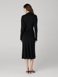 The Camille Dress is elegant and modern, it offers a flattering fit perfect for evening occasions or special events. - Mock neck - Batwing style sleeves - Close fit - Long sleeves - Midi length Size & Fit Maia is 5'10" and is wearing a size XS Fabric & Care Matte Jersey is a soft, smooth jersey with a clean finish that takes well to bright solids. 100% Viscose Interlock Dry Clean Only