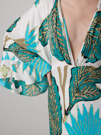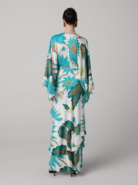 Cut from a soft silk georgette, the Christine Maxi dress has a sultry, relaxed drape. - Deep V-neckline - Also has hook and eye closure for more chest coverage - Long wide relaxed sleeves - Easy shape - Asymmetrical ruffles - Maxi length Size & Fit Sasha is 5'10" and wearing a size XS Fabric & Care Silk Georgette is a ultra light and soft, this fabric has a delicate drape and a romantic feel. 95% Silk 5% Spandex