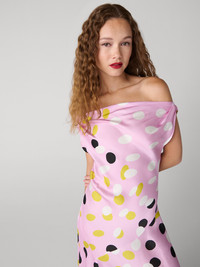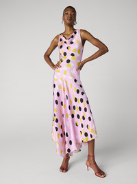 The Cosette Dress has a fluid silhouette and a soft sheen creating an effortlessly elegant look, perfect for any occasion. - Cowl neckline - Sleeveless - Can be worn off the shoulder - Asymmetrical maxi length Size & Fit Maia is 5'10" and is wearing a size XS Fabric & Care With a silky surface and sultry drape, Stretch Satin is ultra effortless, balancing softness and stretch. 53% Viscose 44% Rayon 3% Spandex Dry Clean Only