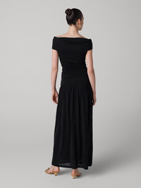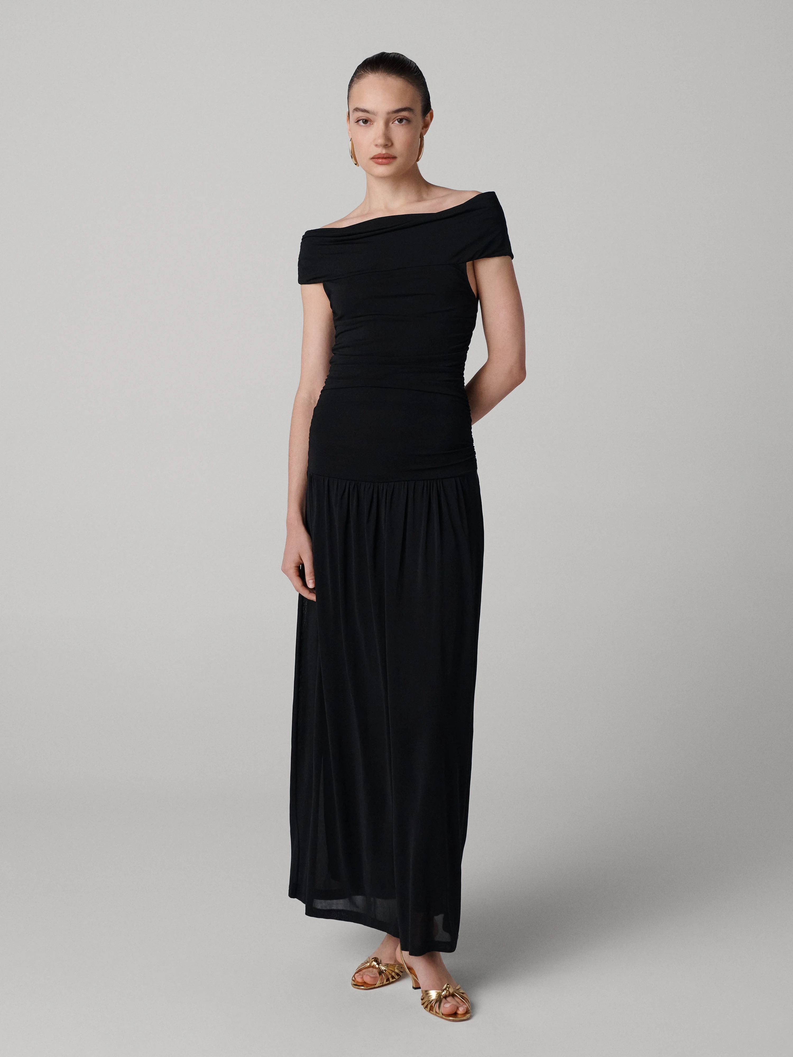 Cut from our new tissue jersey, the Cynthia Dress sits off the shoulders with a soft and effortless drape. - Sits off the shoulders - Ruched bodice - Pockets - Drop waist - Falls around the ankles Size & Fit Sasha is 5'10" and is wearing a size XS Fabric & Care An ultra-light and stretchy evolution of our tissue jersey that creates soft, slinky silhouettes. 100% Viscose