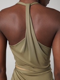 Embody sophistication in the effortlessly stylish and soft Daphne Dress - Halter neckline - Sleeveless - T style back - True wrap style - Falls around the knee Size & Fit Isha is 5'10" and is wearing a size XS Fabric & Care Matte Jersey is a soft, smooth jersey with a clean finish that takes well to bright solids. 100% Viscose Interlock