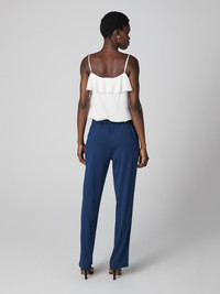 Straight from Diane's suitcase. Cut from a soft, silk georgette, the Diane pants carry her effortless essence. - Stretch waistband - String tie for a cinched custom fit - Straight leg - Create a matching look with the Diane top Size & Fit Isha is 5'10" and wearing a size XS Fabric & Care Silk Georgette is a ultra light and soft, this fabric has a delicate drape and a romantic feel. 95% Silk 5% Spandex