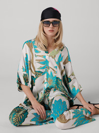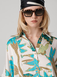Crafted from a stretchy silk georgette, the Diane Short Sleeve Shirt is an easy shape with a tailored look that balances luxury and effortlessness. - Classic collar - Buttons up the front - Wide half sleeves - Relaxed, boxy fit - Wide sleeves Size & Fit Afra is 5'9" and is wearing a size XS Fabric & Care Silk Georgette is a ultra light and soft, this fabric has a delicate drape and a romantic feel. 95% Silk 5% Spandex