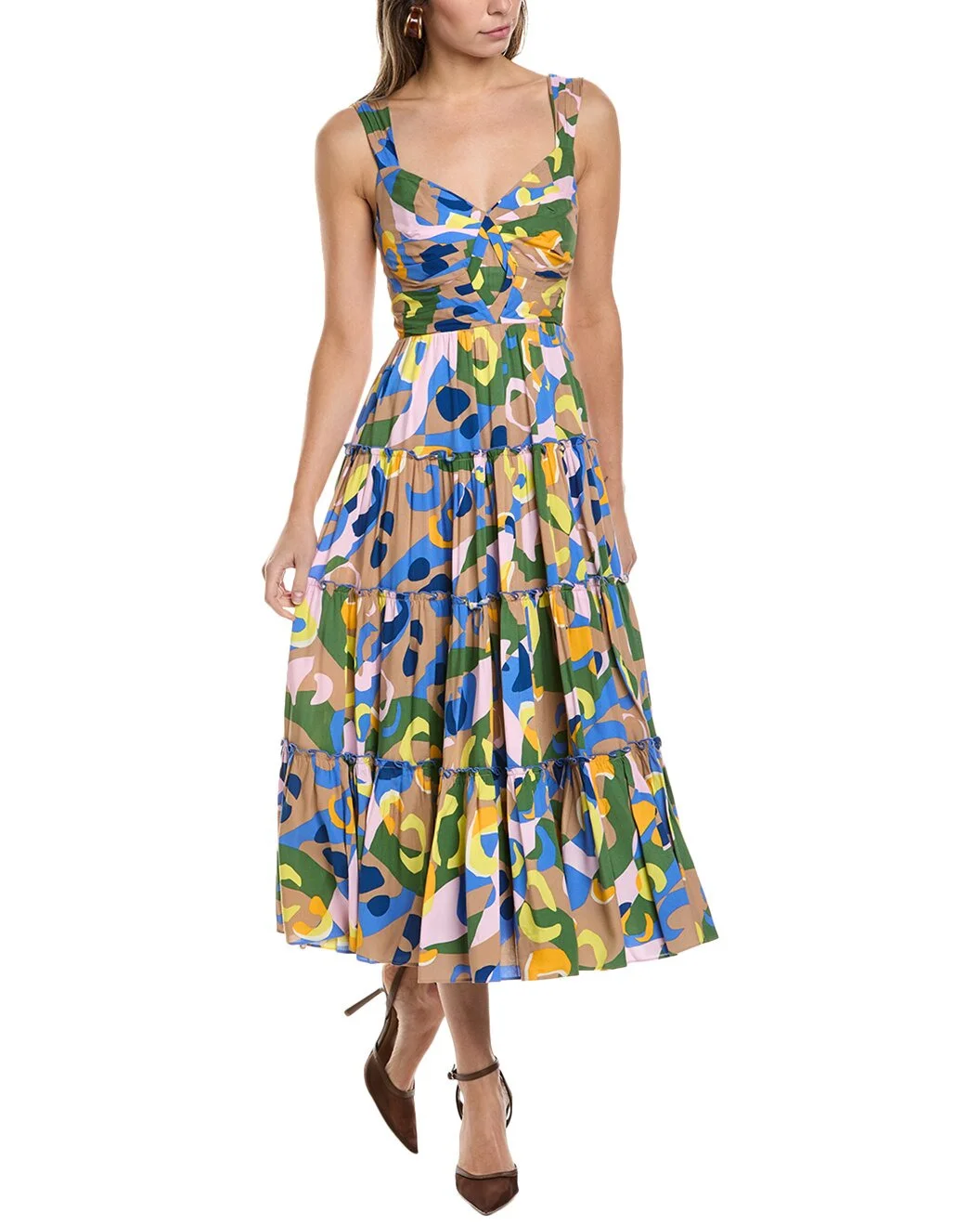 - About the brand: Iconic silhouettes. Signature prints. Timeless femininity. - A-Line Dress in cloud leopard with pleated bodice and tiered skirt - Approximately 49in from shoulder to hem - Model is 5'10 and is wearing a size 4. Measurements may vary slightly by size. - Center back zipper with hook-and-eye closure - 100% rayon - Dry clean only - Imported