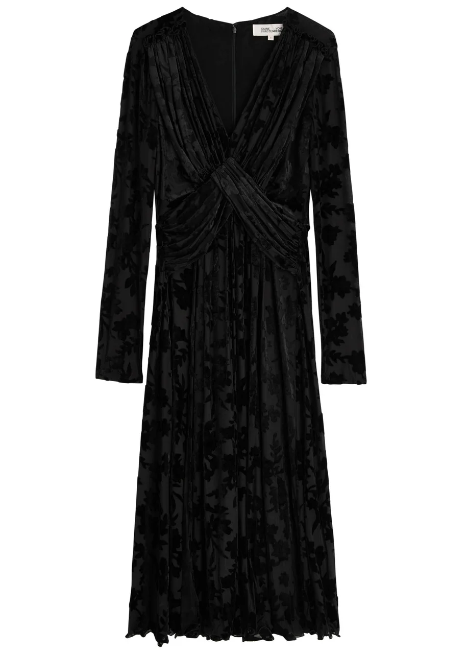 Diane Von Furstenberg Strand Flocked Mesh Midi Dress