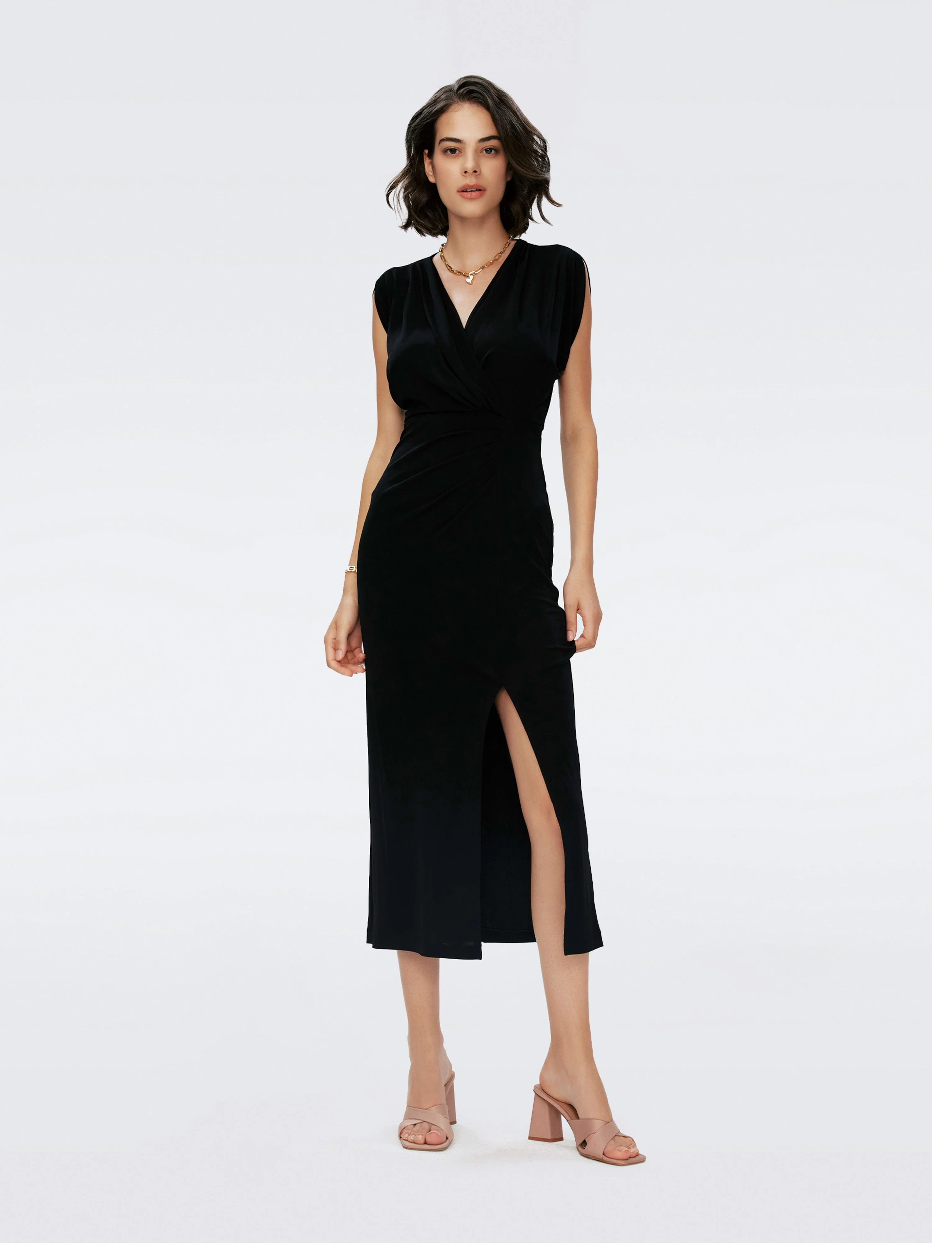 Made from matte jersey, the Williams Dress has a light, soft feel and a smooth finish. - V-neckline - Sleeveless - Wrap-style gathering - Cinched waist - Close fit - Single side slit - Midi length Fabric & Care Matte Jersey is a soft, smooth jersey with a clean finish that takes well to bright, bold prints. 100% Viscose
