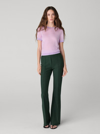 The Elise Pants are crafted from an ultra-flattering, soft knit jacquard, featuring a comfortable stretch waistband and a sleek center seam detail down the leg. - Stretch waistband - Straight leg with slight flare - Flattering center seam down leg - Full length Size & Fit Olivia is 5'10.5" and is wearing a size XS Fabric & Care Knit Jacquard is a soft woven fabric with a luxurious feel and an elevated look. 57%Cotton 37.5%Poly 5.5%Spandex Dry Clean Only