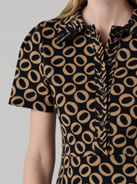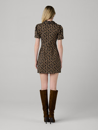 The Ford Dress is the perfect polished mini, crafted from our soft knit jacquard. - Classic collar - Short sleeves - Buttons down neckline - Mini length Size & Fit Harleth is 5'10" and is wearing a size XS Fabric & Care A knit detailed with woven prints that give it a textured feel and an elevated look. 49.8% Polyester 47.6% Cotton 1.5% Spandex Dry Clean Only