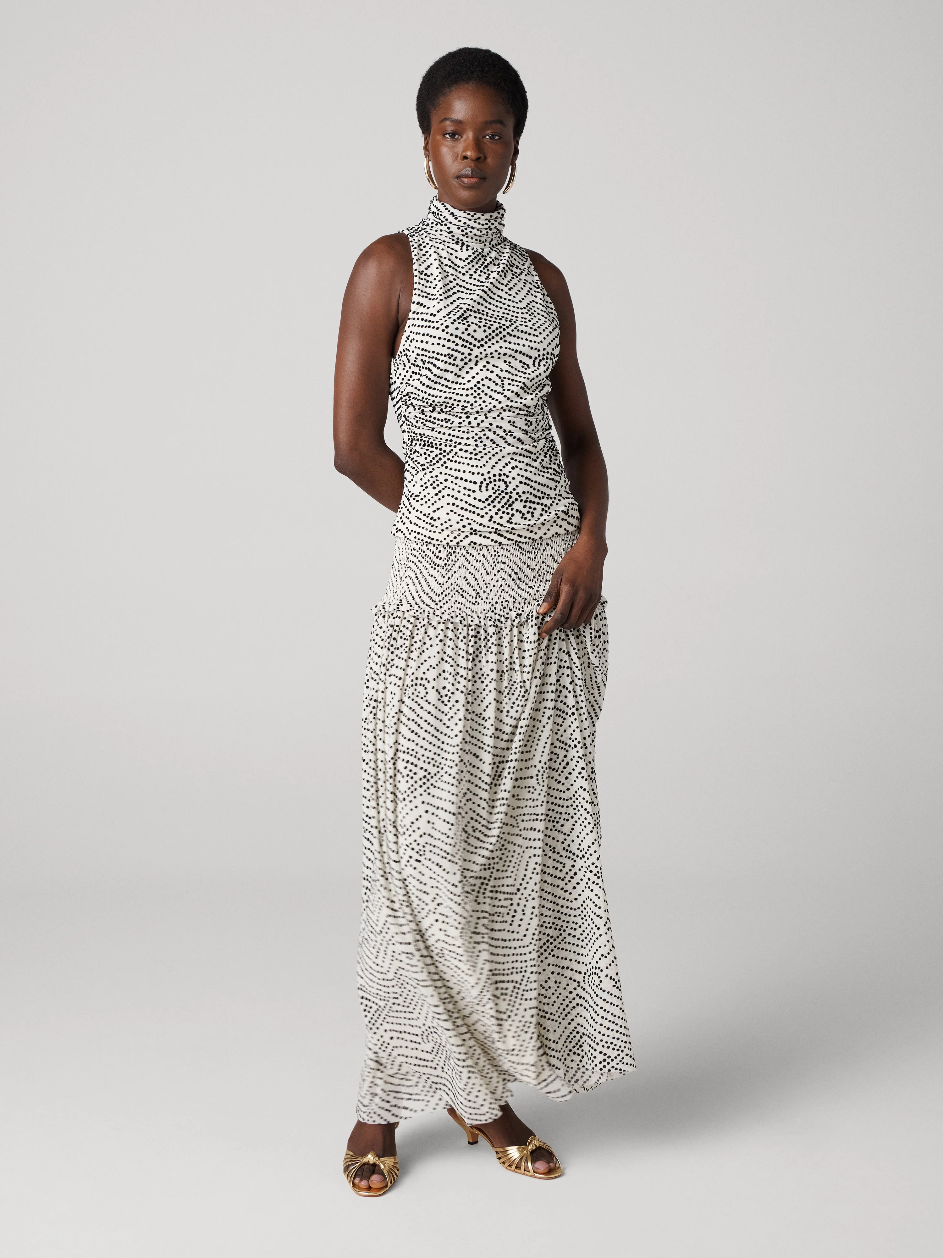 Cut from a flocked mesh, the sleeveless Frances Top is a turtle neck silhouette with soft ruching and texture. - Sleeveless - Turtle neck - Ruched bodice - Falls around the hips Size & Fit Isha is 5'10" and is wearing a size XS Fabric & Care Leave a lasting impression in our soft, stretchy, and stunning flocked mesh. 95% Polyester 5% Spandex Flocked Mesh
