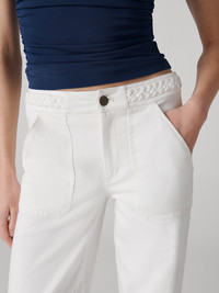 Crafted from our new stretchy denim, the Gia Jeans are a classic white denim piece, balancing comfort and style. - High waisted fit - Braided waist - Folded hem - Straight legs - Ankle length Size & Fit Afra is 5'9" and is wearing a size 2 Fabric & Care A soft, natural fabric with a structured fit and slight stretch. 98% Cotton 2% Spandex