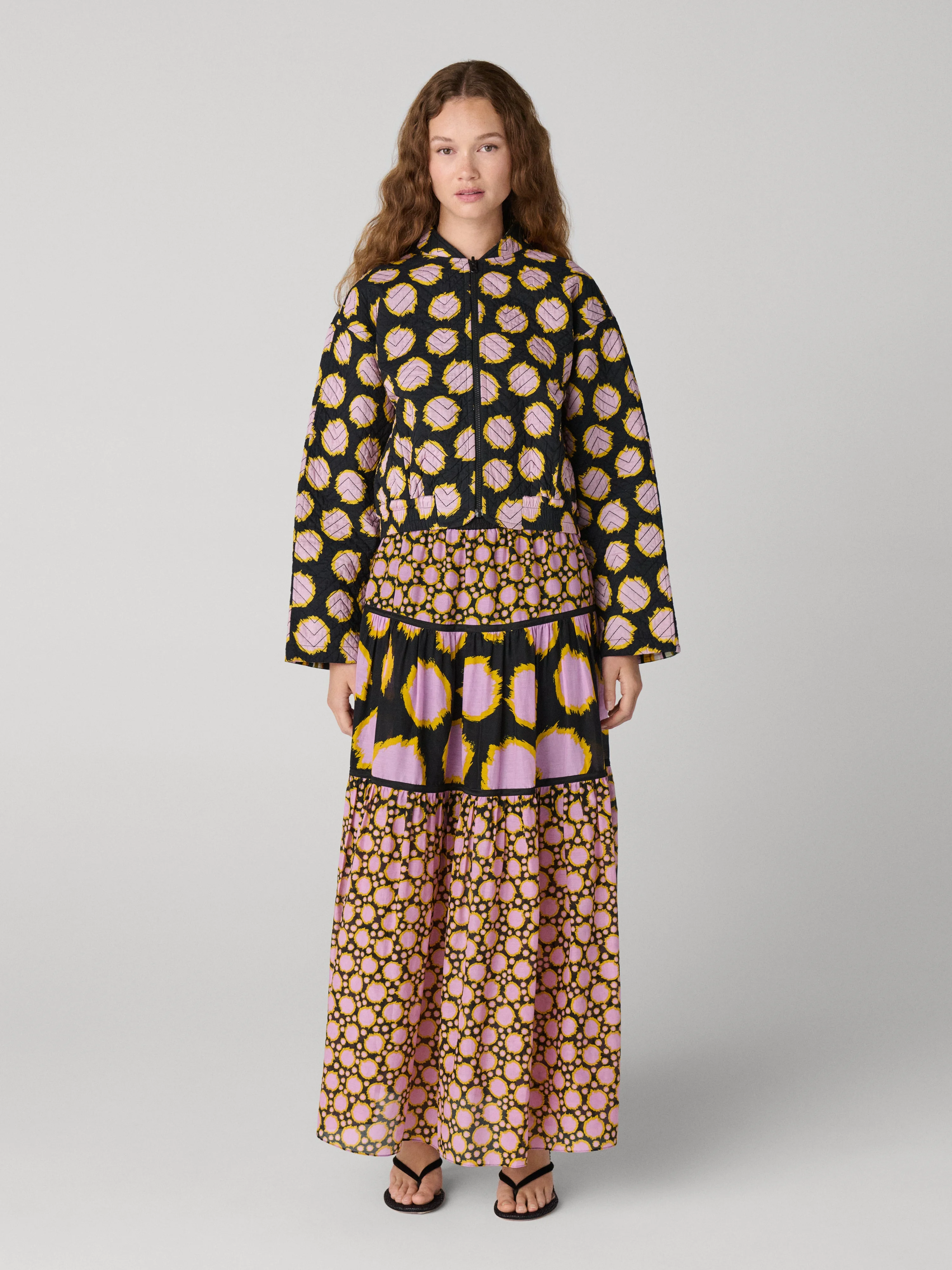 The Ilene Jacket is a 100% cotton reversible style with two distinct prints. - Mock neckline - Long sleeves - Quilt like fabric - Reversible - Zipper closure - Waist length Size & Fit Maia is 5'10" and is wearing a size XS Fabric & Care Lightweight and airy, this 100% cotton fabric has a crisp yet delicate drape. 100% Cotton Voile Dry Clean Only